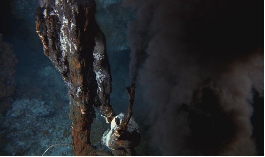 海底熱液活動在離散板塊邊界和匯聚板塊邊界均可出現,但都集中在拉張性構造帶上,主要分布于洋中脊、弧后擴張中心等。其形成的機理是:海水沿裂谷張性斷裂或裂隙滲入洋殼內部,受熾熱的熔巖影響后與基底玄武巖發生反應,形成酸性、還原且富硫化物與成礦金屬的熱液,溫度高達350~400℃。反應程度隨溫度和壓力的增加而增加,直到巖石變得難以滲透,含礦熱液就上升回到海底。當它們從噴口涌出時與冷海水相遇,導致黃鐵礦、黃銅礦、纖鋅礦、閃鋅礦等硫化物及鈣、鎂硫酸鹽的快速沉淀,最后不斷堆積成一種煙囪狀的地貌。煙囪高低粗細各不相同,高的可以達到一百多米,矮的也有幾米到幾十米。因溫度和組分差異,形成白煙囪或黑煙囪:當熱液溫度為100~350℃時,形成主要由硫酸鹽礦物(硬石膏、重晶石)、二氧化硅和白鐵礦組成的白煙囪。當溫度≥350℃時,形成由暗色硫化物如磁黃鐵礦、閃鋅礦和黃銅礦等堆積而成的黑煙囪。