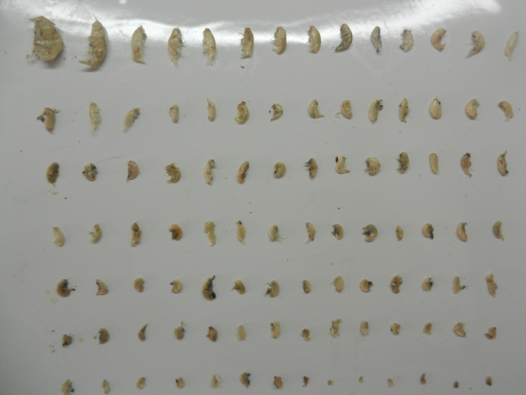 此外,最近,中國(guó)科考團(tuán)隊(duì)在馬里亞納海溝約7,400米處也誘捕到若干尾深海獅子魚(圖4)。通過(guò)解剖,還在這些獅子魚胃含物中發(fā)現(xiàn)大量形態(tài)較為完整的甲殼類生物(圖5),這也表明超深淵區(qū)域并非如人們想象中生物資源匱乏。