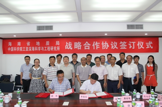65日上午,中科院三亞深海科學與工程研究所(籌)與海南省地質局戰略合作簽約儀式在海口舉行,籌建組副組長謝強和地質局黨委書記、局長李海忠分別代表雙方在協議上簽字。廣州分院副院長張福生、三亞深海所籌建組副組長戴瓊興出席并講話。海南省地質局副局長、總工程師廖香俊主持簽約儀式。