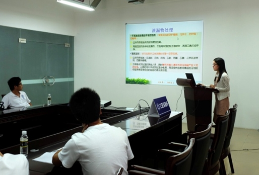 鄭麗平結合在實驗室工作的特殊性,就一般安全規則,危險品的正規操作過程,遇到危險的緊急處理和用電、廢品處理等事項給大家進行了介紹。她告訴大家研究是對科學的探索,因此很多未知的東西需要在實驗室里研究和證明,發生出乎意料的問題也是難免的,但這些風險都可以通過安全操作降到最低,重視安全,就會避免危險事故的發生。
