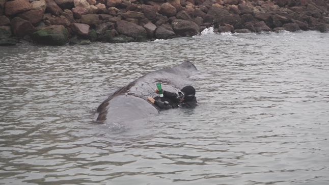 該抹香鯨最初發(fā)現(xiàn)時,其周身被漁網(wǎng)纏繞。當潛水員剪開困住抹香鯨的漁網(wǎng)后,發(fā)現(xiàn)在動物口中也有大量的漁網(wǎng)。且不論抹香鯨是否由于人類活動而最終致死,但人類活動始終對其造成了影響。這種大型鯨類一旦發(fā)生擱淺事件,救助工作難度極大。大型鯨類擱淺救助成功的案例在世界上還極為少數(shù)。希望公眾可以以此為鑒,提高海洋環(huán)境、海洋生物的保護意識,同時也希望有關(guān)類似事件的應(yīng)急響應(yīng)機制能夠盡快建立,以期在類似事件發(fā)生后可以在第一時間做出科學應(yīng)對方案并進行有效救護。
