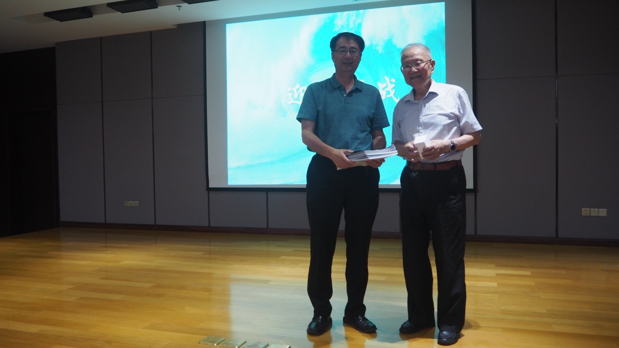 報告結束后,丁抗向汪院士贈送“萬米海水”樣品以及所刊《深海視界》、航次期刊《深海探索》,并對報告進行總結。丁抗在總結中指出,在掌握技術的同時,要始終保持對于真理的追求、對于科學的熱情,要在日常科研中注重提高海洋精神、海洋意識。