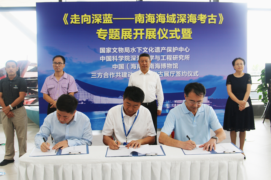 2019322日上午,《走向深藍——南海海域深海考古》專題展開展儀式暨國家文物局水下文化遺產保護中心、中國科學院深海科學與工程研究所、中國(海南)南海博物館三方合作共建動態水下考古展廳簽約儀式在中國(海南)南海博物館順利舉行。
