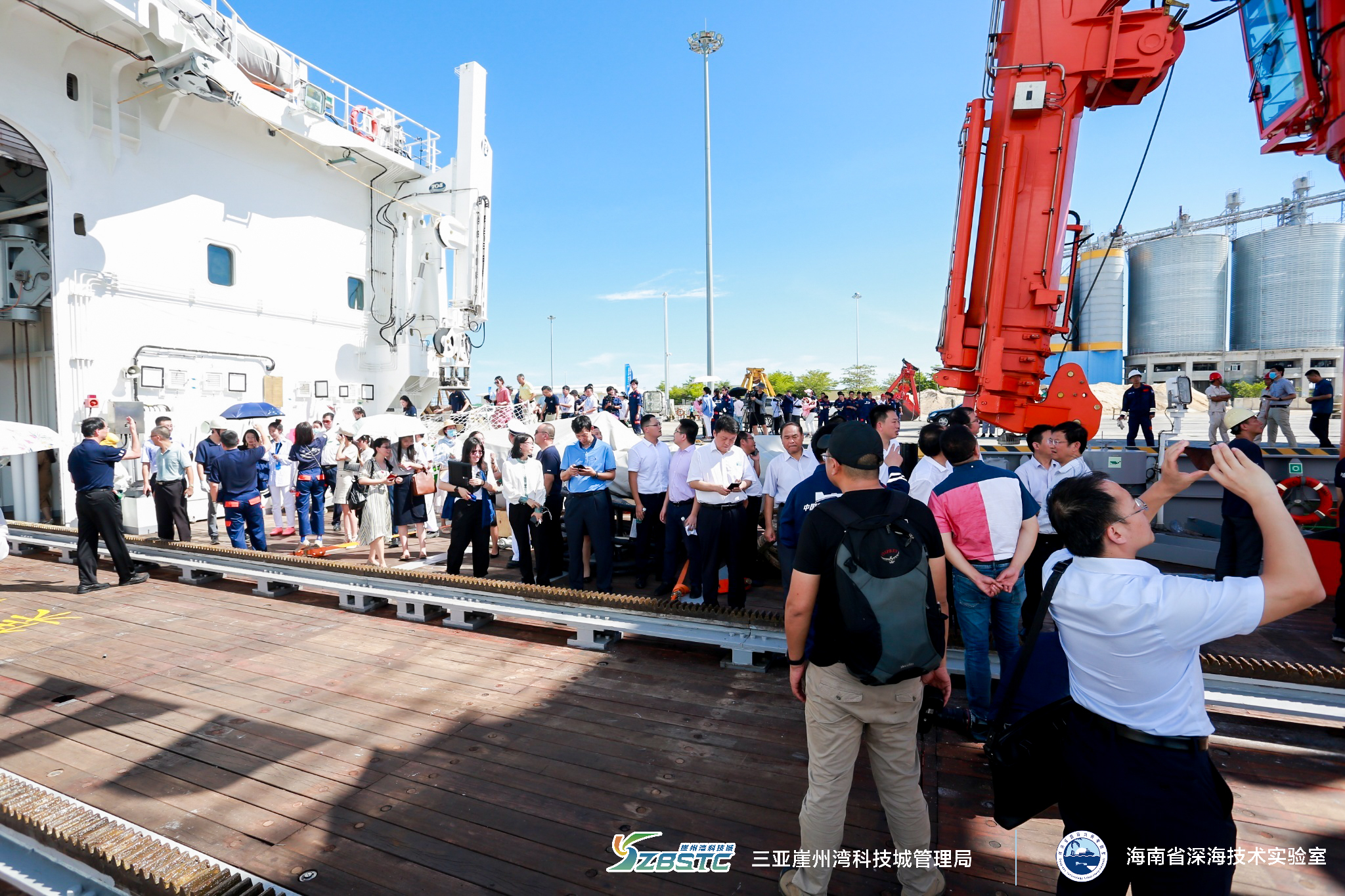 6月25日, “探索二號”船從福建馬尾造船廠碼頭啟航,經(jīng)過830海里的航程, 28日下午,順利抵達(dá)三亞崖州灣科技城南山港碼頭。來自海南省人民政府、海南省科學(xué)技術(shù)廳、深圳市規(guī)劃和自然資源局、中國船舶集團(tuán)702研究所、704研究所、武漢理工大學(xué)、中科院沈陽自動(dòng)化所、中科院聲學(xué)研究所、三亞崖州灣科技城管理局等相關(guān)單位代表共200余人參加接船儀式。